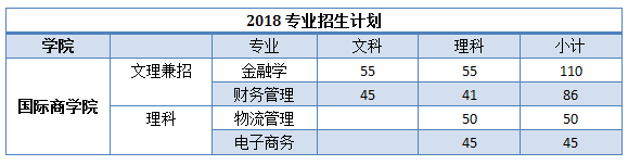 专业设置:2018年计划开设金融学专业、电子商务专业、财务管理专业、物流管理专业和“广东财经大学—英国埃克塞特大学2+2本科财务管理专业实验班”(中外人才培养实验班)。