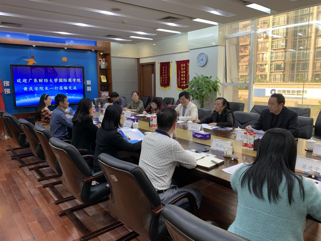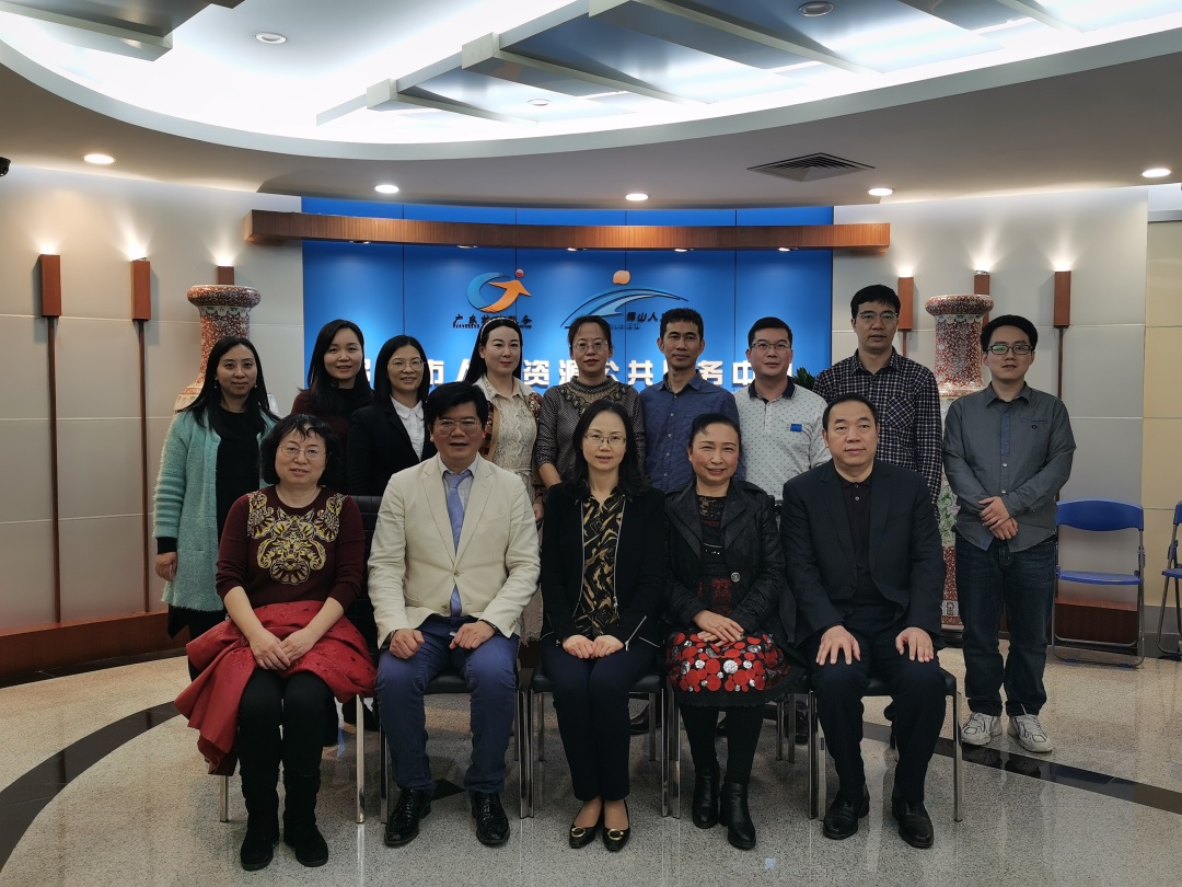 1月27日下午,9999js金沙老品牌院长黄庆安、党总支书记兼执行院长彭雷清、副院长王宇晖和教研室主任彭中文、罗任飞一行5人赴佛山市人力资源和社会保障局调研。