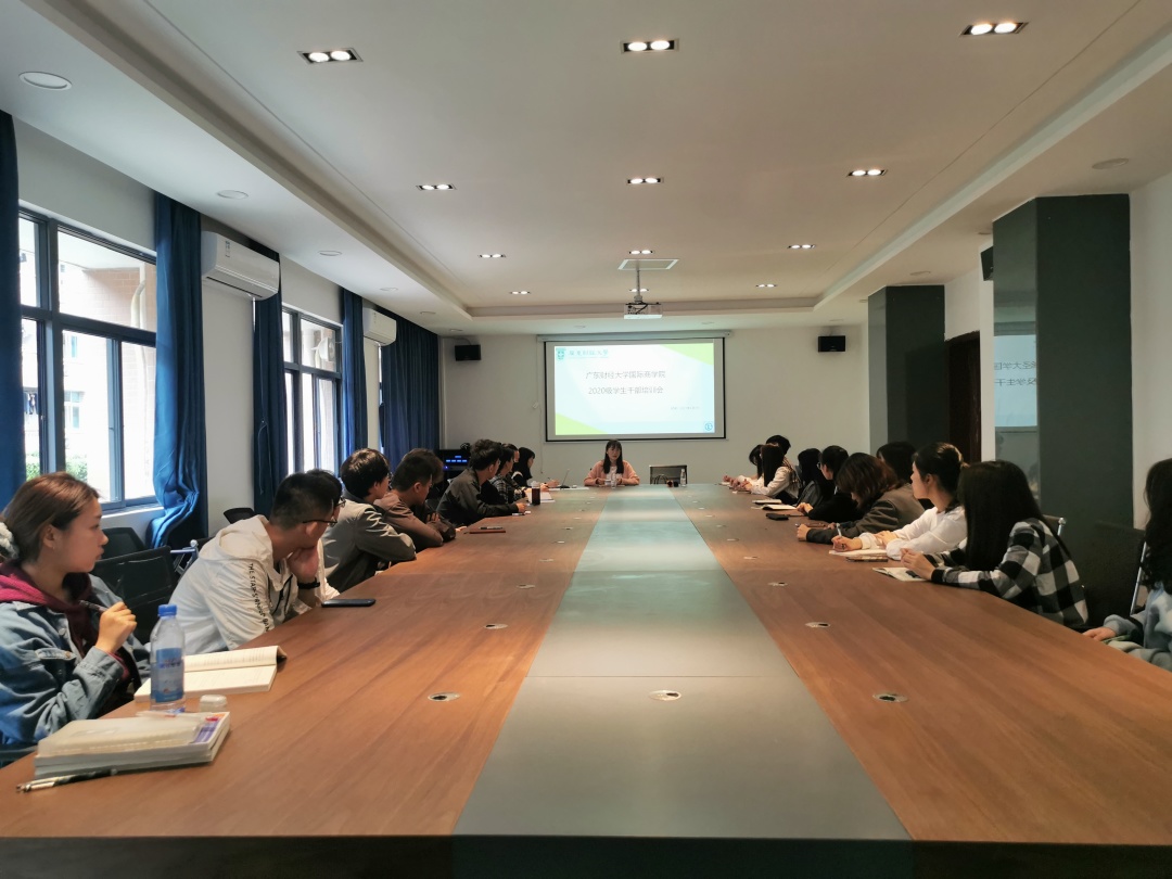 2021年4月8日中午12点,9999js金沙老品牌2020级学生干部培训会议在有为书院九栋会议室召开。会议旨在进一步加强我院班级管理的建设,提高学生干部的自身素质和工作能力,增强凝聚力,提高工作效率,力争成为一个具有大局意识,责任意识,效率意识,创新意识的优秀团体。此次会议由学院辅导员吕阳老师主持,辅导员助理许斌杰、张绮琳列席,2020级全体班长、团支书、学习委员参加此次培训。