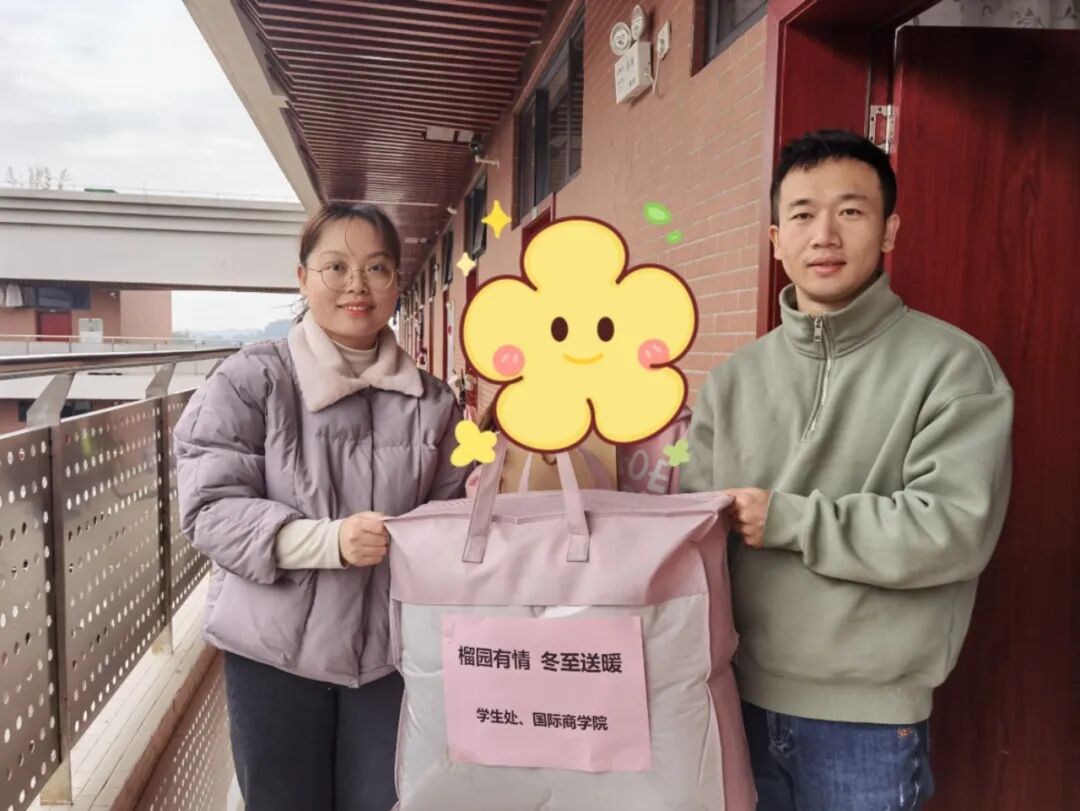 冬至来临,寒意渐浓。为帮助我院家庭经济困难学生解决实际问题,传递学院对家庭经济困难学生的关爱之情,我院联合学生处开展“榴园有情 冬至送暖”慰问活动。学生管理科副科长李林,学院辅导员罗娴明到困难生宿舍为她们送去慰问品。