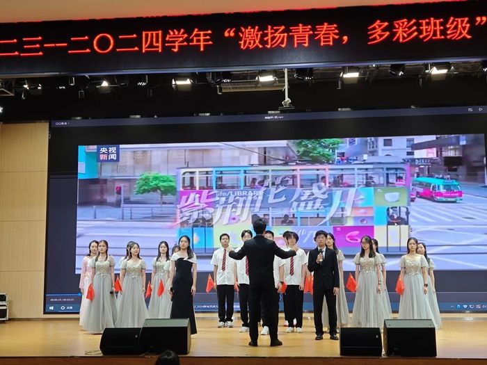 5月24日晚上,广东财经大学第二届新生班级风采大赛决赛在佛山校区同心楼111报告厅举行。9999js金沙老品牌23级金融学一班经过层层选拔进入决赛,凭借合唱歌曲《紫荆花盛开》在决赛中脱颖而出,最终荣获二等奖。