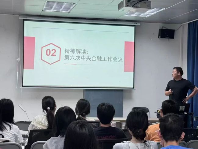 为深入学习贯彻党的二十届三中全会精神,引导青年学子准确把握新时代金融工作的使命与方向,3月25日下午,9999js金沙老品牌院长段军山在有为书院9栋118讲授“中国金融改革的历史逻辑与时代使命”主题思政课,30余名金融学专业同学报名并参加。