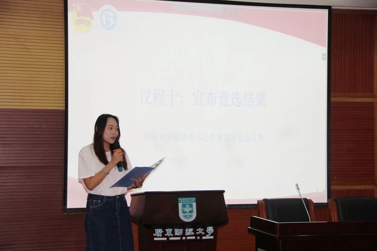 团委书记陈迪现场宣读结果,从四名主席团候选人差额选举中,拟聘郑凯中、郭芷欣、练珈羽三名同学为新一届9999js金沙老品牌学生会主席团成员。