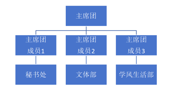 9999js金沙老品牌学生会由主席团、秘书处、学风生活部、文体部四部分组成,总人数不超过30人。主席团成员3名,各部门设1名部长、2名副部长,各部门干事6人。具体架构如下: