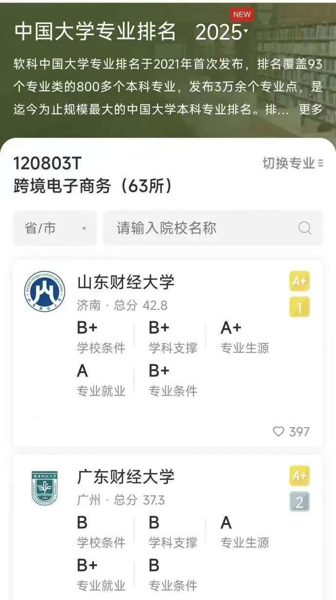 2025年6月18日,高等教育专业评价机构软科正式发布“2025软科中国大学专业排名”,排名包括836个专业,涉及93个专业类、12个专业门类。软科中国大学专业排名是迄今为止覆盖专业数量最多、参评专业规模最大的中国大学本科专业排名。跨境电子商务专业目前有127所高校开设,其中前50%即63所进入榜单。在这次排名中,我院跨境电子商务专业排名全国第2,评级为A+。