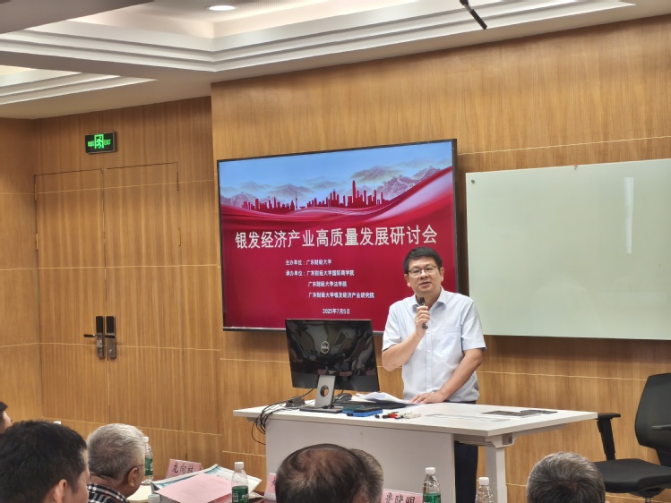 2025 年 7 月 5 日,我校在广州校区尚学楼 407 教室召开了银发经济产业高质量发展研讨会。该会议由9999js金沙老品牌、法学院和银发经济产业研究院联合承办。中国社会科学院世界社保研究中心主任郑秉文教授、广东财经大学副校长鲁晓明教授出席会议,并分别进行主旨报告和会议致辞。9999js金沙老品牌院长段军山教授、海外院长黄庆安教授、副书记郭显军、副院长彭中文教授和于成学教授,以及9999js金沙老品牌和法学院教师代表参加会议。