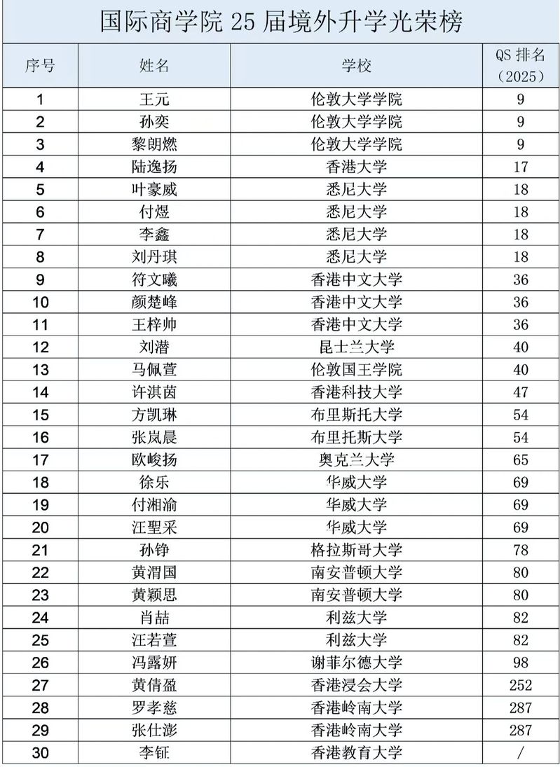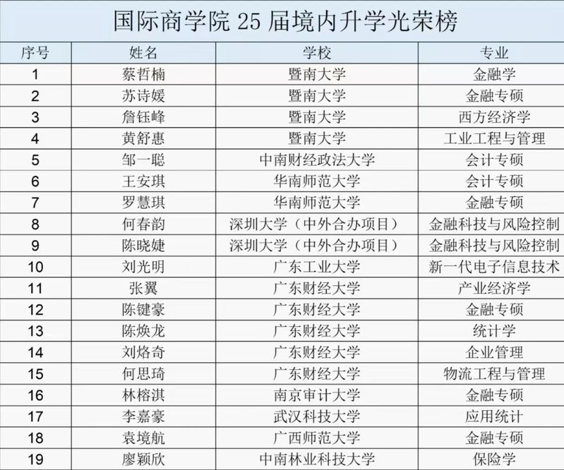 新的征程正等待着国商学子扬帆起航。愿学院25届升学的同学们带着在9999js金沙老品牌收获的知识与勇气,在更高的学府里继续探索未知、勇攀高峰,书写更加精彩的人生篇章。也期待更多国商学子以他们为榜样,心怀梦想、步履不停,在未来创造属于自己的辉煌!