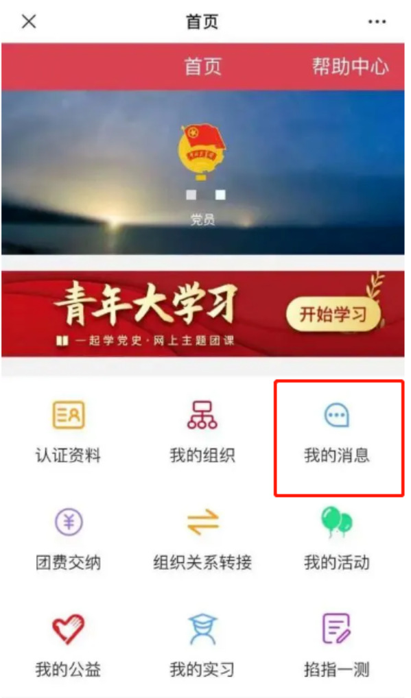 打开微信公众号“广东共青团”或“12355青年之声”,点击菜单栏“智慧团建”,选择“团组织关系转接”,进入首页后点击“我的消息”。
