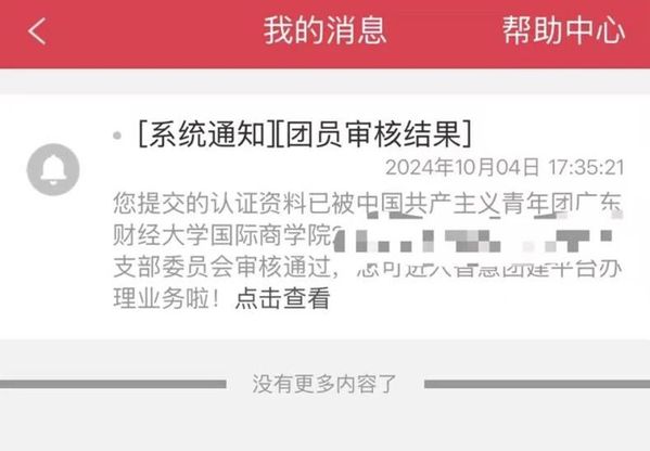 团员可在系统首页的“我的消息”、转接页面的“组织关系转接记录”中查看当前审核状态。可主动联系对应的团组织负责人提醒审核。