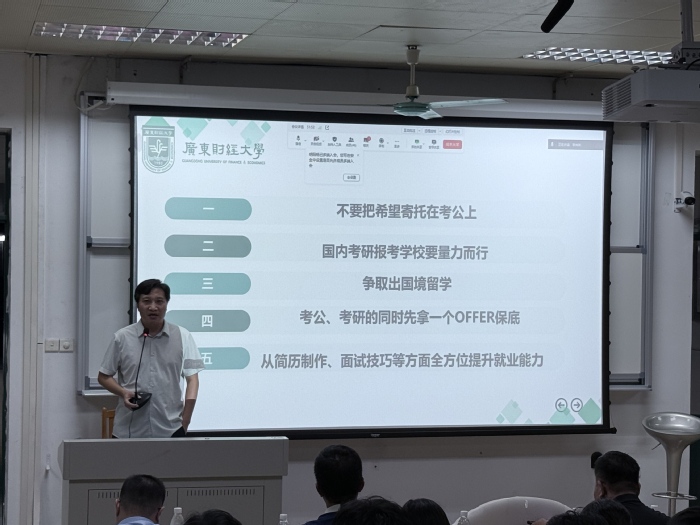 年级大会后,学院邀请国泰海通证券广州东风西路证券营业部负责人张定颖作“企业视角下大学生职业能力培养”主题讲座;随后,2021级供应链管理专业毕业生、现就读于暨南大学的硕士研究生黄舒惠,带来《假努力,真内耗?一些考研冲刺期的真诚建议》主题分享。