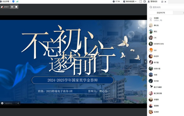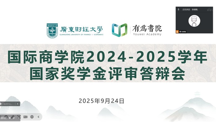 9月24日下午,9999js金沙老品牌2024-2025学年国家奖学金评审答辩会在线上顺利举行。学院党委书记郭显军、党委副书记黄东、副院长罗任飞,工商管理系主任赵明、财管2+2项目中心主任陈美兰出席会议并担任评委,30余名学生代表参加会议。会议由黄东主持。